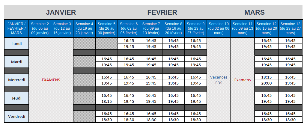 Vous trouverez ci-dessous le planning d’ouverture de la salle 36.209 pour les mois à venir…