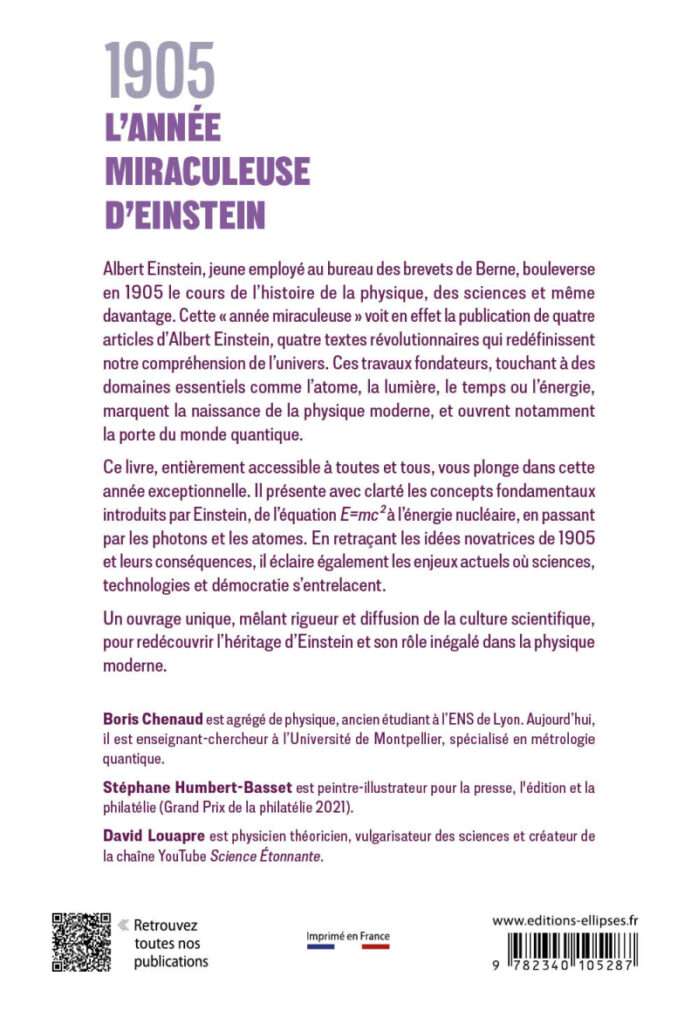 En retraçant les idées novatrices de 1905 et leurs conséquences, l’ouvrage mêle rigueur et diffusion de la culture scientifique pour redécouvrir l’héritage d’Einstein et son rôle inégalé dans la physique moderne.