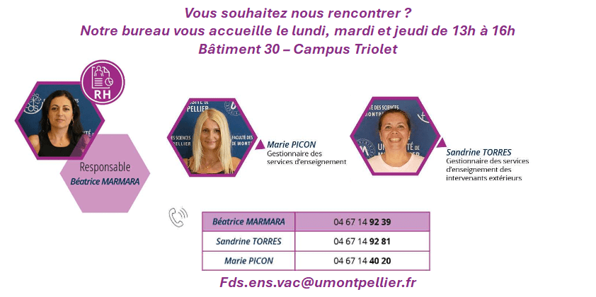 Attention : Aucun dossier non-validé par les services de la Direction des Ressources Humaines de l’Université de Montpellier ne pourra donner lieu à un paiement