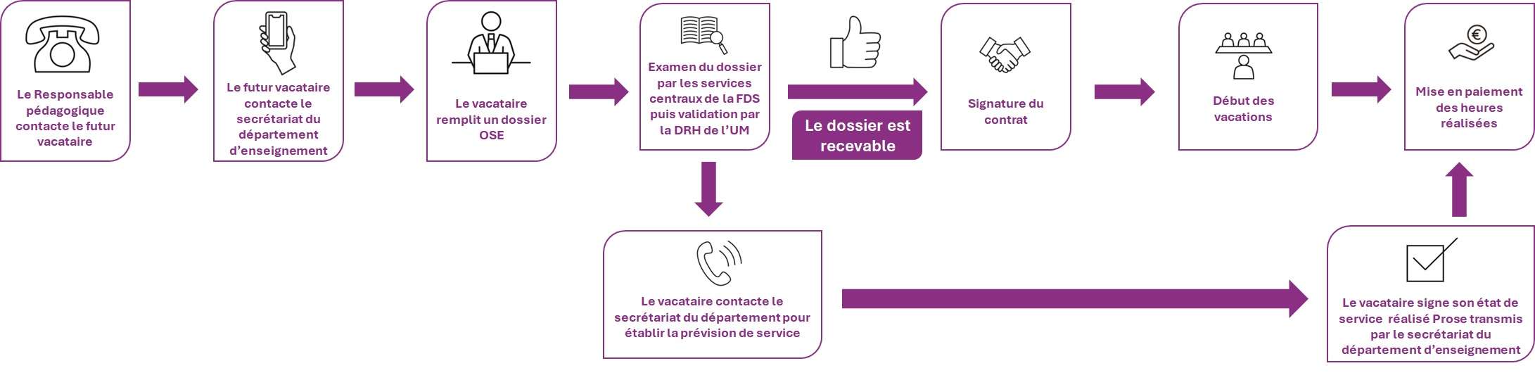 Attention : Aucun dossier non-validé par les services de la Direction des Ressources Humaines de l’Université de Montpellier ne pourra donner lieu à un paiement