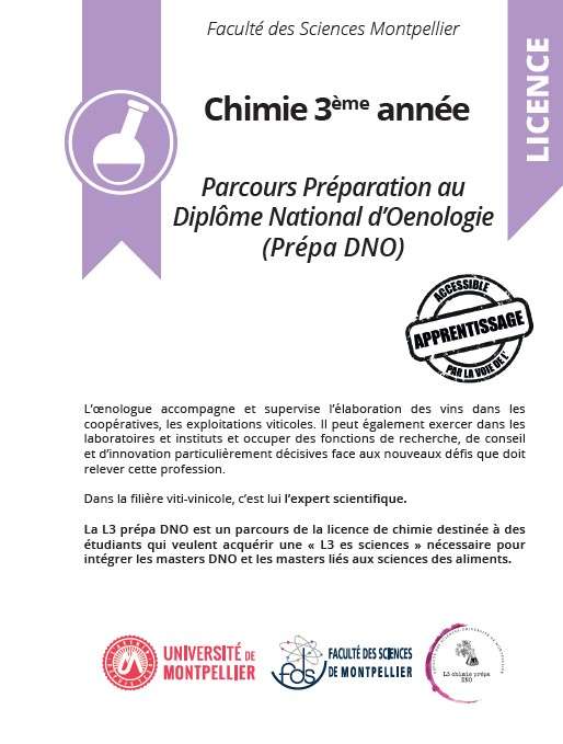 Licence de Chimie Consultez la plaquette Site web du département de Chimie Licence 1 Licence 2 / LIcence 3 Il existe également une licence 3 de préparation au diplôme national d’œnologie