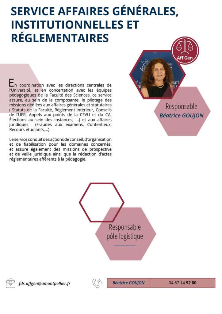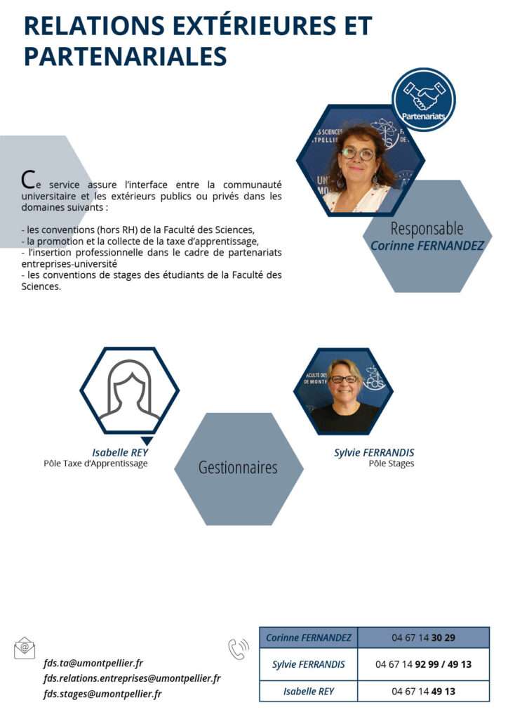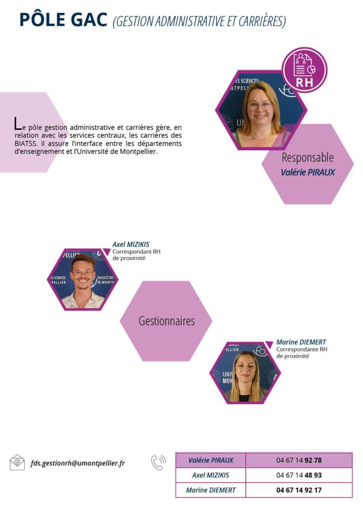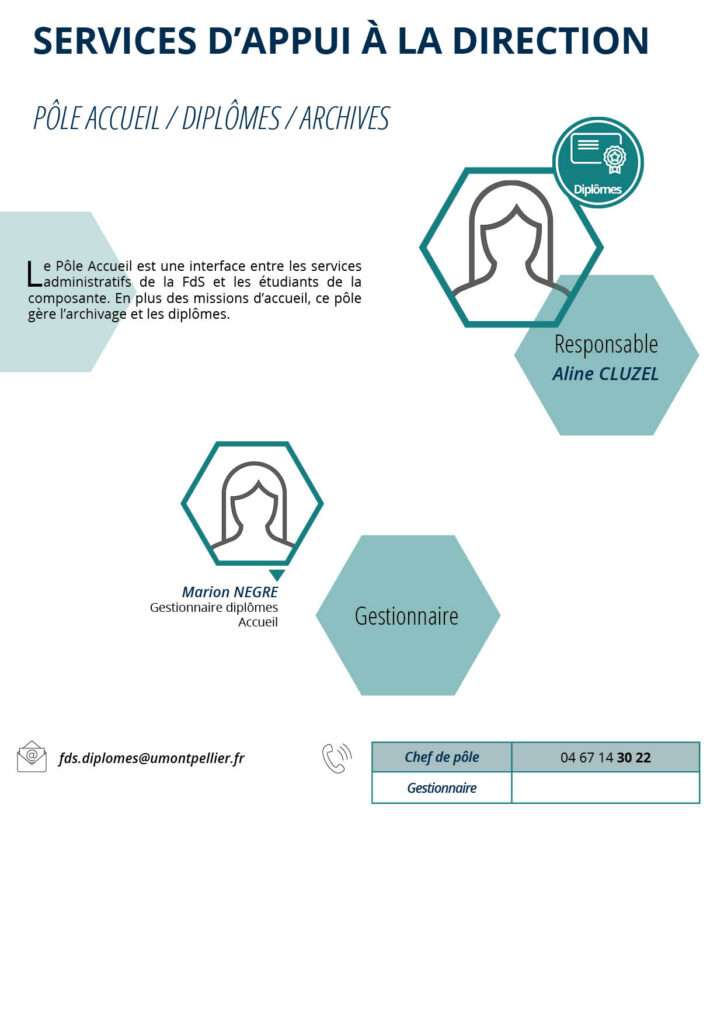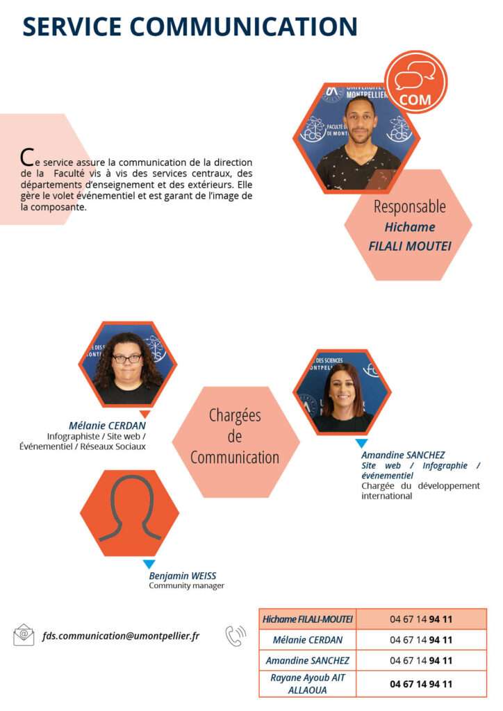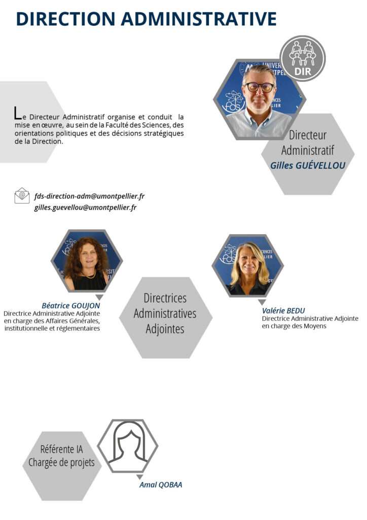 La Faculté est composée de différents services administratifs dont les missions sont d’assurer auprès du Responsable administratif, la réalisation, la mise en œuvre et le suivi de toutes les opérations et actes administratifs dans le respect des règles et des procédures applicables au domaine respectif.